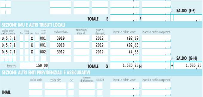Totale IMI 2012: 89,76 € + 102,14 € = 191,90 €